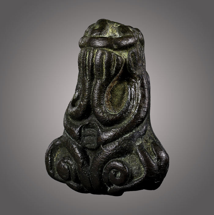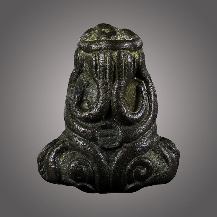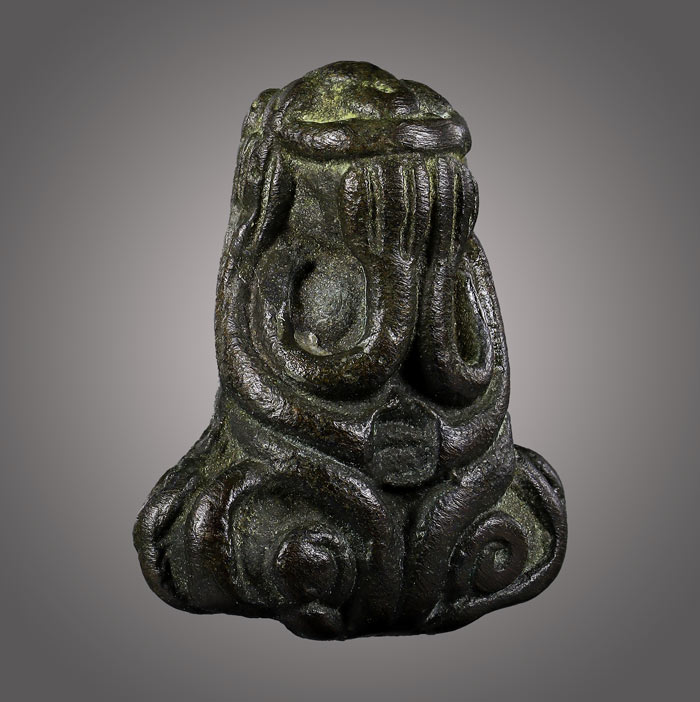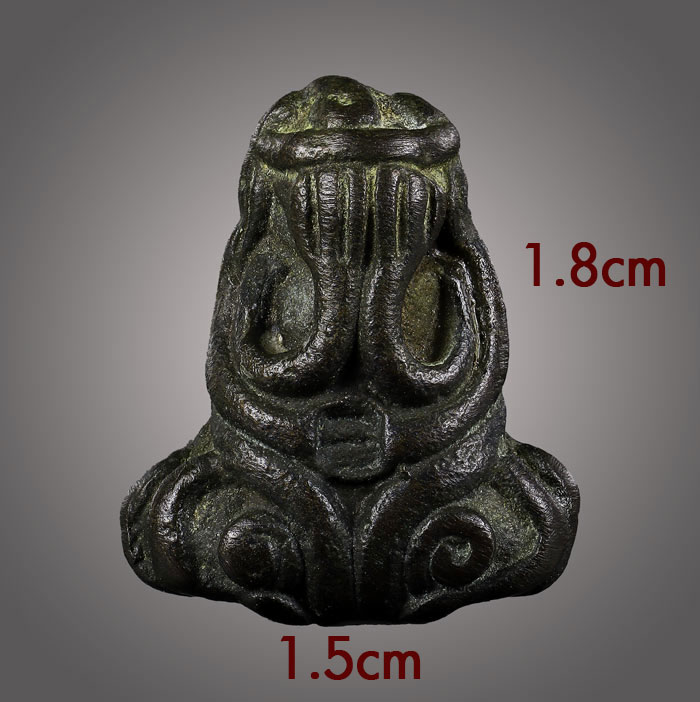 พระปิดตา พิมพ์ยันต์ยุ่ง (ไม่ทราบที่สร้าง) เนื้อสัมฤทธิ์เก่ามีอายุ ขนาดพระฐาน 1.5 cm สูง 1.8 cm