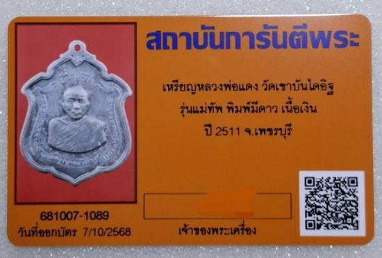 ***เหรียญแม่ทัพ หลวงพ่อแดง วัดเขาบันไดอิฐ ปี11 มีดาว "เนื้อเงิน" พร้อมบัตรรับรอง***