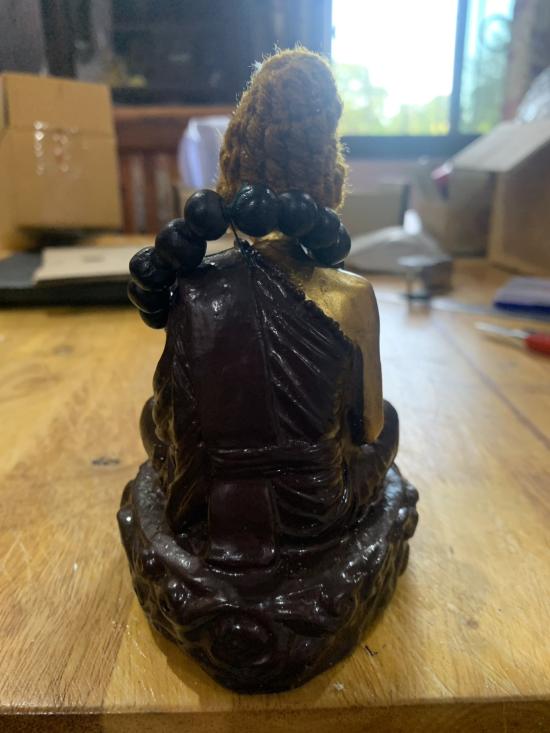 พระบูชา หลวงปู่หมุน วัดบ้านจาน ศรีสะเกษ ปี65 ฐานสามเหลี่ยม (งานวัดจัดสร้างเองในนามวัดบ้านจาน) เนื้อแร่เหล็กน้ำพี้ผสมมวลสารเก่าผสมเรซิ่นปัดทอง ฐาน 3 นิ้ว สูง 4 นิ้ว ไต้ฐานอุดพระผงดวงรวยชนะจน เลข 217 |