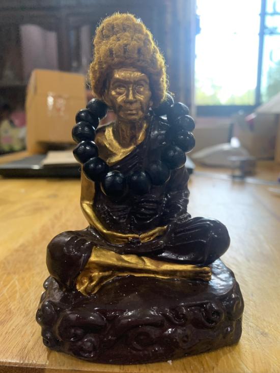 พระบูชาหลวงปู่หมุน ฐิตสีโล วัดบ้านจาน เนื้อแร่เหล็กน้ำพี้ผสมเรชิ่นปัดทอง ขนาด 3 นิ้ว ((ไต้ฐานอุดพระผงดวงรวยชนะจน ออกวัดบ้านจาน))