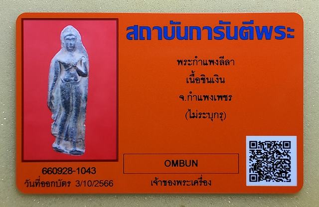 +++ พระกำแพงลีลา เนื้อชินเงิน กรุวัดอาวาสน้อย จ.กำแพงเพชร + บัตร G-Pra +++