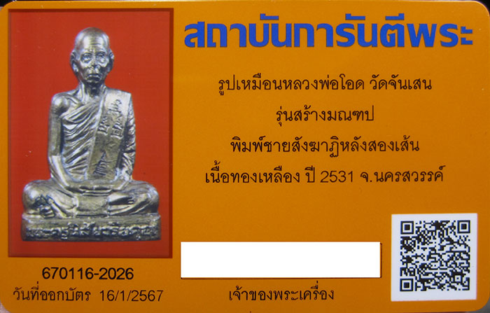 รูปหล่อปั๊มหลวงพ่อโอด วัดจันเสน รุ่นมณฑป เนื้อทองเหลือง ***นิยม ตาซ้อนสังฆาฏิสองเส้น*** เลี่ยมกรอบเงินยกซุ้มอย่างดี พร้อมบัตรรับรอง |