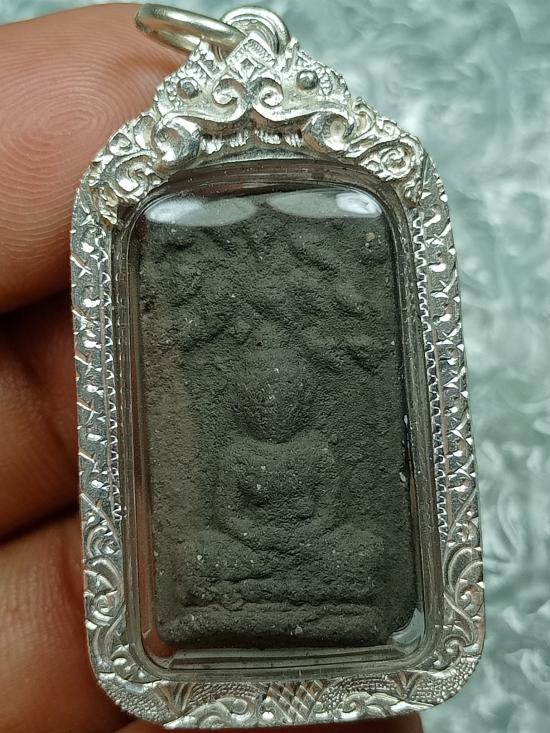 พระปรกโพธิ์ผงพรายสมุทร พิมพ์เล็กบล็อกโพธิ์พุ่ม ปี2499 หลวงพ่อเจิม วัดหอยราก จ.นครศรีธรรมราช สวยเดิมๆ พร้อมเลี่ยมเงินงานมืออย่างดี