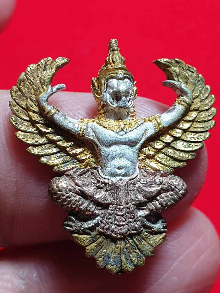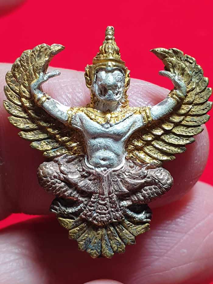 พญาครุฑ พระอาจารย์วราห์ วัดโพธิทอง รุ่นมั่งมีศรีสุข เนื้อเงินกระไหล่สามกษัตริย์ ปี 2545 กรุงเทพฯ เคาะเดียวแดง 2,000