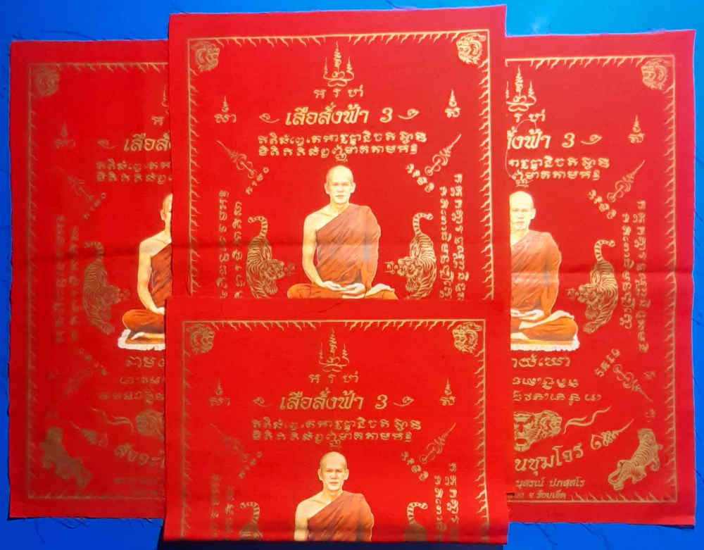 +++(( วัด ใจ เคาะเดียว 100 บาท )) ผ้ายันต์เสือสั่งฟ้า๓ สัจจะในหมู่โจร สีแดงจำนวนการจัดสร้างเพียง๑๒๕๐ผืน พระอาจารย์ต้อม ปภัสสโร วัดท่าสะแบง จ.ร้อยเอ็ด รับ 4 ผืน ครับผมสวยๆๆไม่ผ่านการใช้ครับ +++