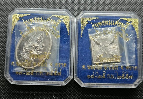 หลวงปู่บัว ถามโก เหรียญพรหมเศรษฐี เนื้อเงิน ปี 2558 (เหรียญไข่ 1 เหรียญ +เหรียญข้าวหลามตัด 1 เหรียญ= 2 เหรียญ) หมายเลข 486 พร้อมกล่องเดิมครับ