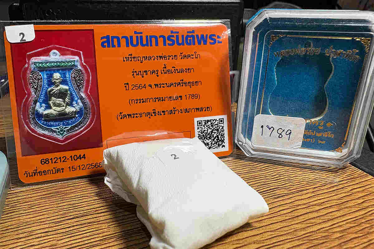 DeDEE บัตรสภาพสวย เหรียญเนื้อเงินลงยาบูชาครู กรรมการ เสมารวยมหาเศรษฐี หลวงพ่อรวย วัดตะโก ๒๕๖๔ จ.พระนครศรีอยุธยา DeDEE