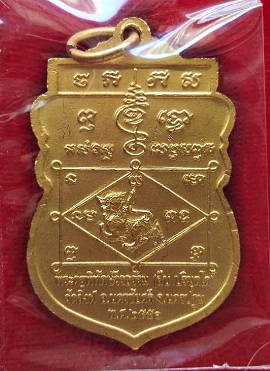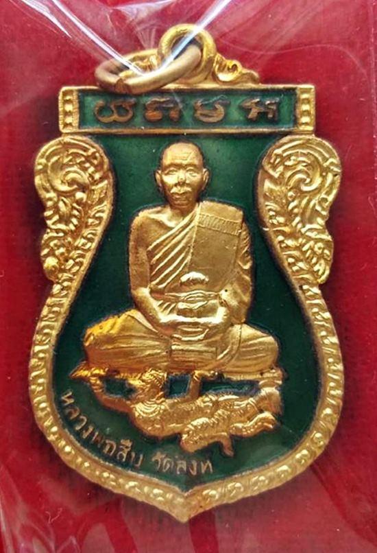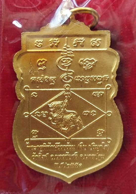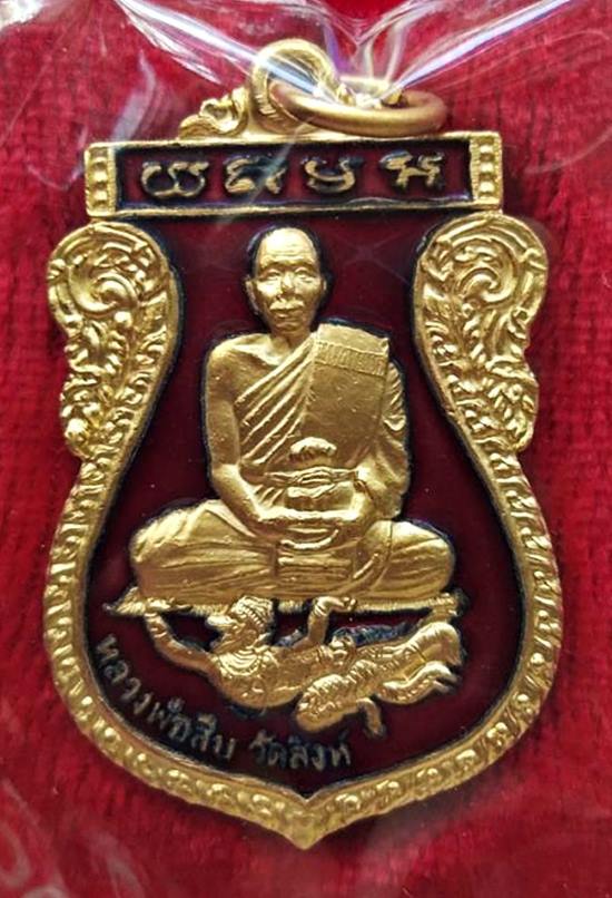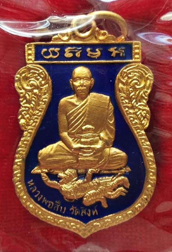เหรียญเสมาหนุมานเหินหาว หลวงพ่อสืบ วัดสิงห์ ปี 2551 เนื้อทองแดงกะไหล่ทองลงยาแดง น้ำเงิน เขียว พร้อมรอยจารหลวงพ่อครับ