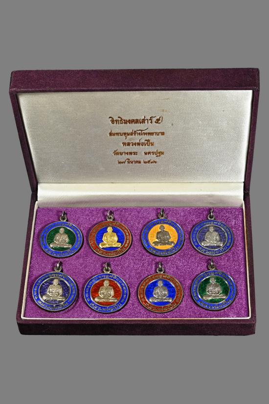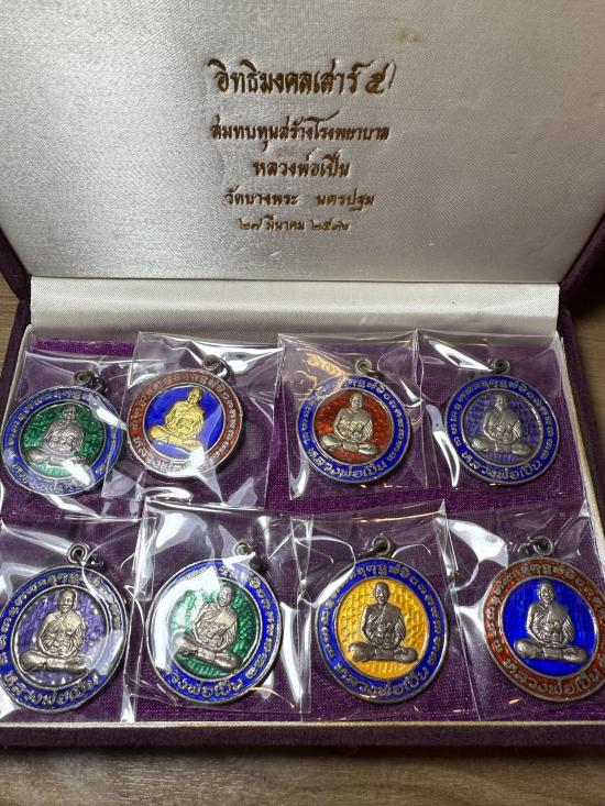 หลวงพ่อเปิ่น วัดบางพระ ชุดกรรมการ 8องค์ เนื้อเงินลงยา (หน้ากากทองคำ1องค์)