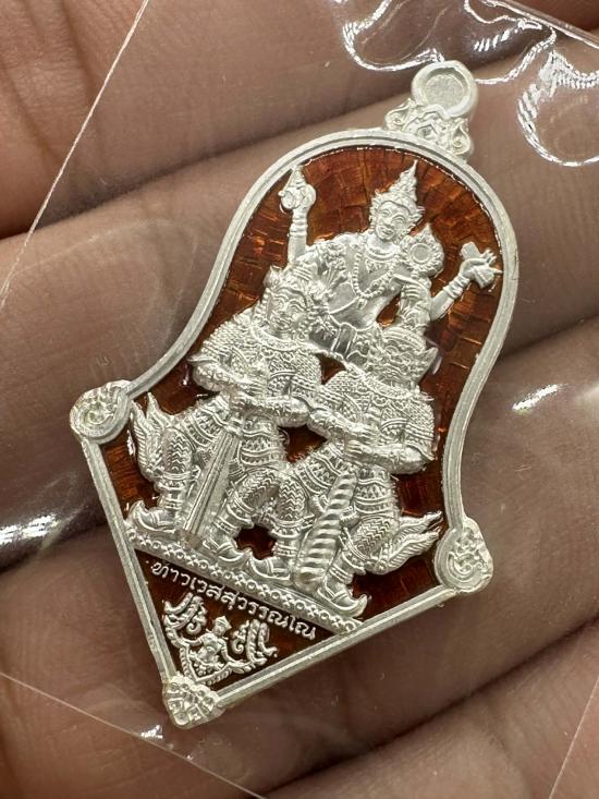 ท้าวเวสสุวรรณโณ จตุมหาราชิกา ปาง 3เทพ ปฐมพรหมจตุมหาราชิกา รุ่น ๑ มีแล้วไม่จน เนื้อเงินบริสุทธิ์ ลงยาแดง หลวงพ่ออิฏฐ์ วัดจุฬามณี จ.สมุทรสงคราม กล่องครบ