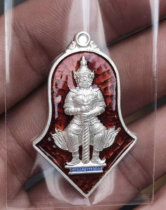 สวยกริ๊ป เหรียญท้าวเวสสุวรรณ รุ่น เทวสถิตย์ หลวงพ่ออิฏฐ์ วัดจุฬามณี พิมพ์ใหญ่ เนื้อเงินลงยาแดง