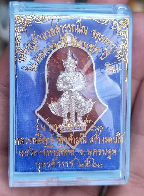 เหรียญท้าวเวสสุวรรณ รุ่น เทวสถิตย์ หลวงพ่ออิฏฐ์ วัดจุฬามณี พิมพ์ใหญ่ เนื้อเงินลงยาแดง กล่องครบ