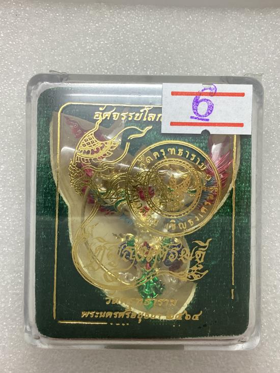 เคาะเดียวแดง 250 พญาครุฑทรงมหิธานุภาพ เชิญธงเศรษฐี วัดครุฑธาราม จ.พระนครศรีอยุธยา พิมพ์ใหญ่ สูง 4.5 ซ.ม. เนื้อตริยะโลหะ (สัมฤทธิ์ผล) ชุบ 2 K ลงยาราชาวดี ซีลเดิมยังไม่ได้แกะ