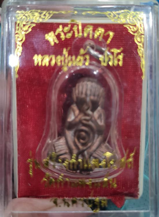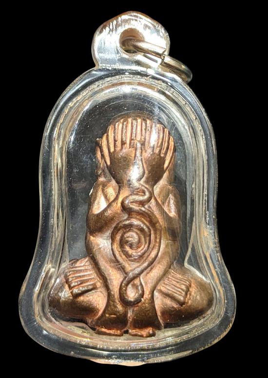 พระปิดตาสร้างกำแพงโบสถ์ เนื้อทองแดงเถื่อน พิมพ์ใหญ่ปี 2547 หลวงปู่แผ้ว ปวโร พร้อมเลี่ยม
