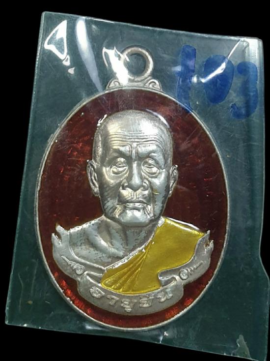เหรียญห่วงเชื่อม"รุ่นอายุยืน" หลวงปู่บุญหนาโสภิตาราม เนื้อเงินลงยาสีแดง หมายเลข#๑๐๓ และมีโค้ตจีนด้านหลัง พร้อมกล่องเดิม |