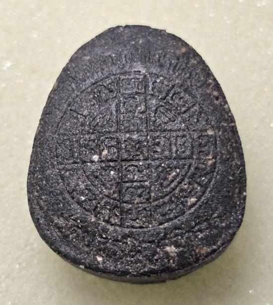 พระปิดตายันต์ดวงเล็ก ปี 2523 สมเด็จพระญาณสังวร (เจริญ) วัดบวรนิเวศวิหาร เนื้อผงใบลาน สภาพสวย ขอบตั้ง นิ้วมือติดชัด หลวงปู่โต๊ะและเกจิคณาจารย์ร่วมยุคปลุกเสกมากมาย <326>