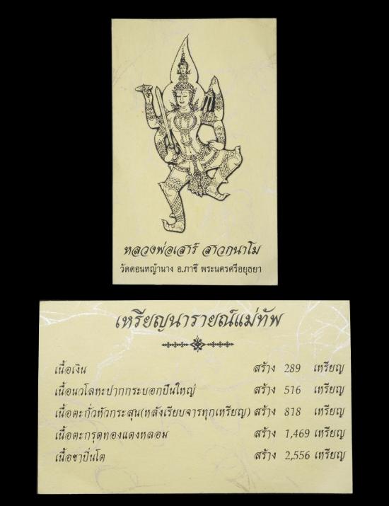 รายละเอียด เหรียญนารายณ์แม่ทัพ หลวงพ่อเสาร์ วัดดอนหญ้านาง อยุทธยา เนื้อตะกรุดทองแดงหลอม สร้าง 1469 เหรียญ แดงเคาะแรก