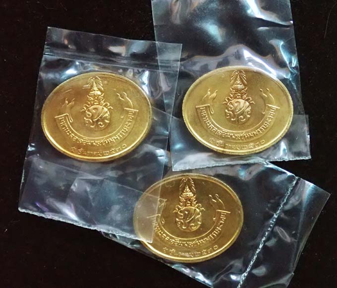 3เหรียญพร้อมกัน !!!!!! เหรียญพระไสยาสน์ หลังภปร. ปี๒๕๓๐ ในหลวงเฉลิมพระชนมพรรษาครบ ๕ รอบ เนื้อบรอนซ์กะไหล่ทอง บล๊อกกองกษาปณ์ สวยมาก..ซองพลาสติกเดิมๆ
