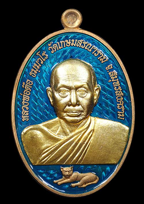 เนื้อทองสัตตะหน้าทองคำแท้ๆลงยาฟ้า สร้างน้อยเพียง 20 เหรียญเท่านั้น