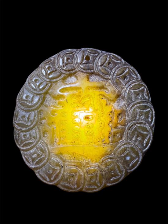 เครื่องราง จี้หินหยกสีน้ำตาล ภาษาจีน ของทนสิทธิ์มีดีในตัว....สวยครับ |