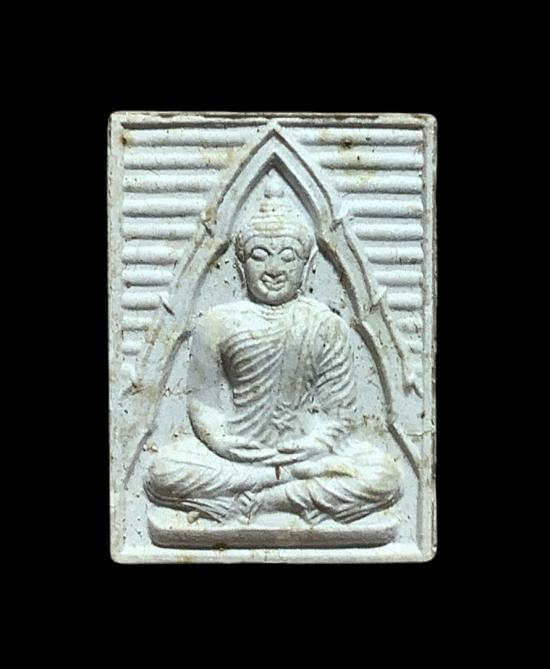 พลิกมาด้านหน้าก็เห็นว่า เป็นพระผงสี่เหลี่ยมขนาดเล็ก มีสีขาวออกครีม