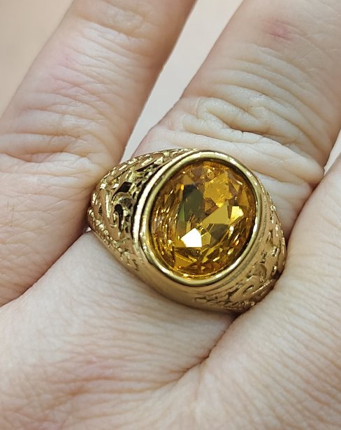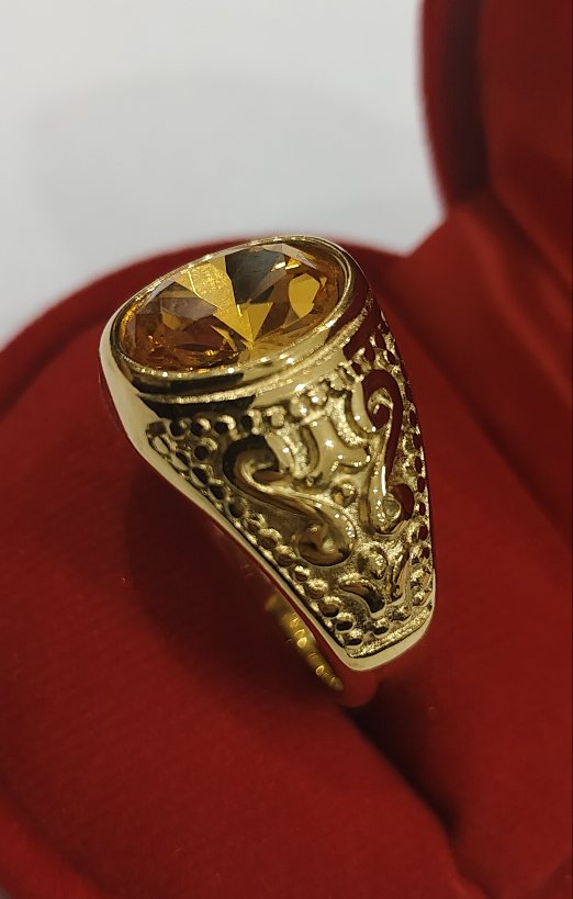 เทขาดทุน++เทปีใหม่++แหวนทองชุบยิงเลเซอร์ แหวนมหามงคลเสริมบารมี หัวพลอยบุษราคัม สวยมาก สวยๆ
