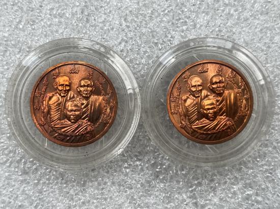 เหรียญ หลวงพ่อพลับ พระมหาถวิล พระครูประดิษฐ์ รุ่นสร้างอาคารอิ่มบุญ วัดโพธิ์นิมิตร จ.สุราษฎร์ธานี สวยเดิม 2องค์
