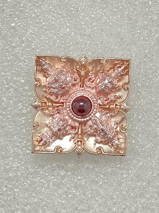 เคาะเดียวแดง 120 มหาเทพเทวศิลป์ จตุรเทพอริยทรัพย์ พระอาจารย์อรรณพ(อาจารย์เล็ก) วัดถ้ำเขาน้อย จ.เพชรบุรี เนื้อสัมฤทธิ์ชุบพิ้งค์โกลด์ พิมพ์ ขนาด 2 ซ.ม. กล่องเดิม |