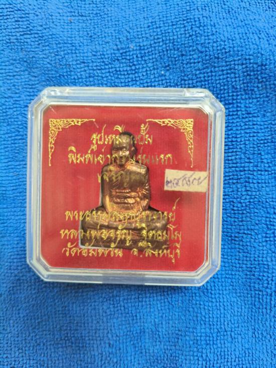 รูปเหมือนปั๊มพิมพ์เข่ากว้างรุ่นแรก พิมพ์ใหญ่ หลวงพ่อจรัญ วัดอัมพวัน เนื้อทองแดง สวยงามกล่องเดิมครับ