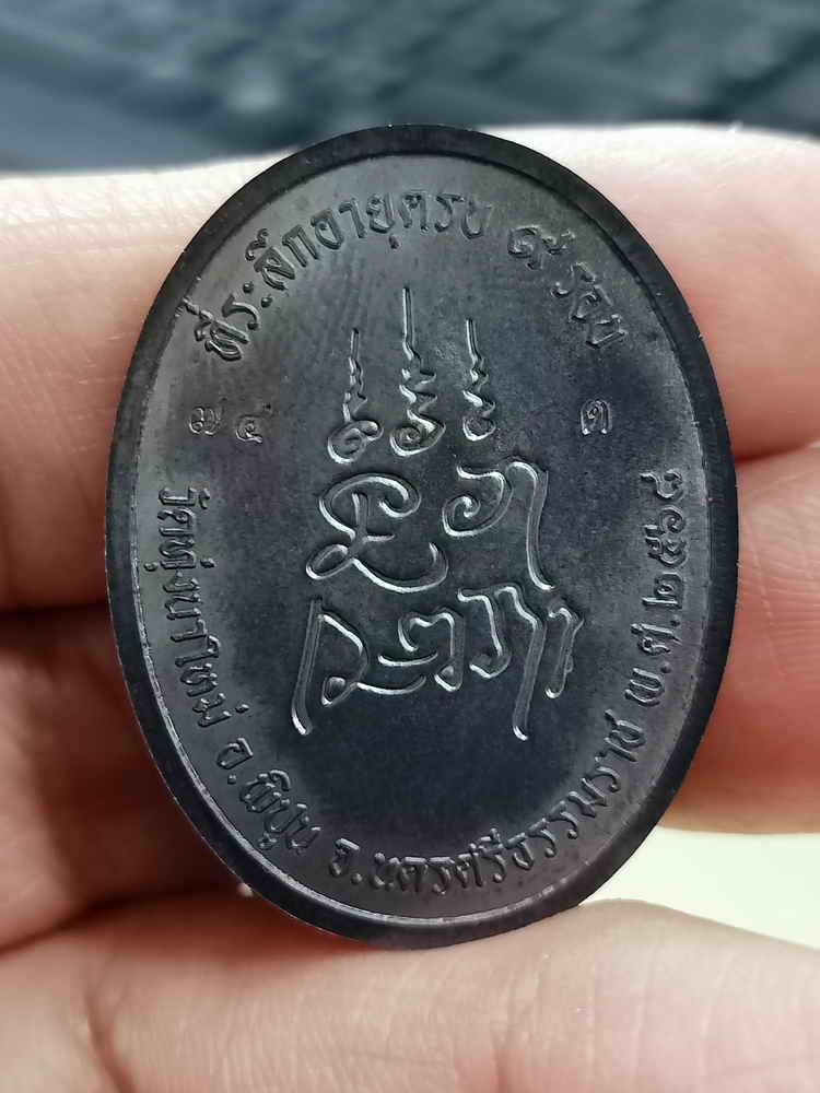 วัดใจ 100 เหรียญเจริญพร ตรงวาระ 9 รอบ หลวงปู่อิ่ม วัดทุ่งนาใหม่ จ.นครศรีธรรมราช 2568 ทองแดงรมดำ ตอก 9 รอบ หมายเลข 74 กล่องเดิม