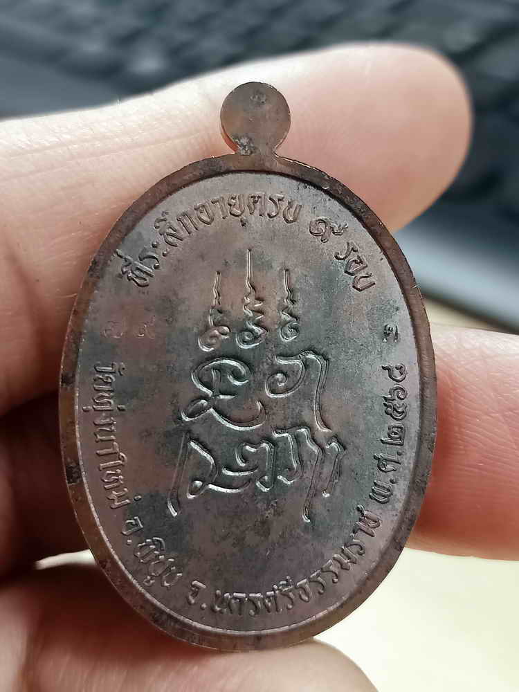 วัดใจ 100 เหรียญเจริญพร ตรงวาระ 9 รอบ หลวงปู่อิ่ม วัดทุ่งนาใหม่ จ.นครศรีธรรมราช 2568 ทองแดงรมดำ หมายเลข 79 กล่องเดิม