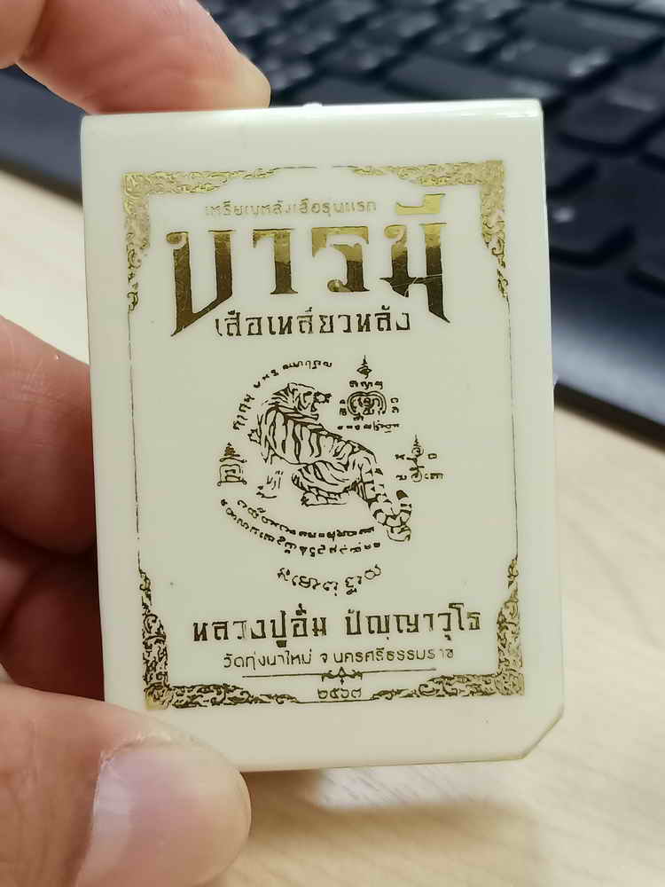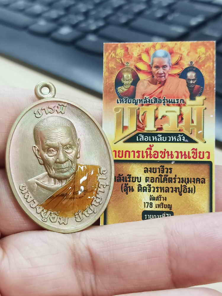 วัดใจ 100 เหรียญหลังเสือรุ่นแรก บารมีเสือเหลียวหลัง หลวงปู่อิ่ม วัดทุ่งนาใหม่ จ.นครศรีธรรมราช 2566 ชนวนเขียว หลังเรียบ หมายเลข 31 กล่องเดิม
