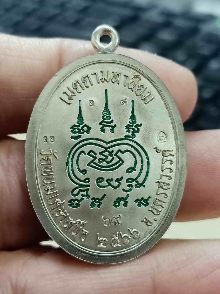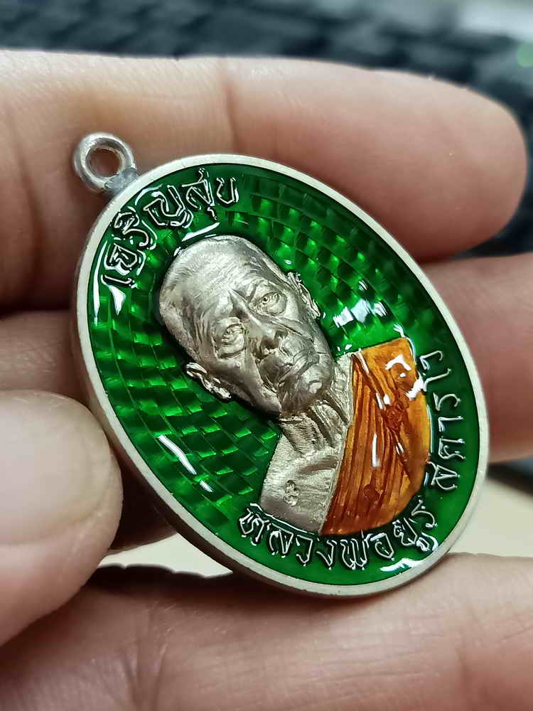 วัดใจ 100 PSGA เหรียญเจริญสุข งานบุญกฐิน หลวงพ่อยูร สคารโว วัดพนมเศษเหนือ จ.นครสวรรค์ ปี 2566 เนื้ออัลปาก้า ห่วงเชื่อมเงิน ลงยาเขียว จีวร ยันตื หมายเลข 69 กล่องเดิม ***ป๋องสุพรรณการันตี