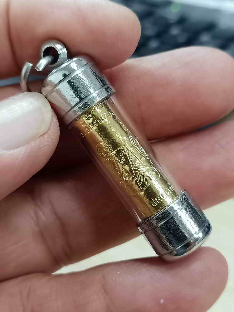 วัดใจ 100 พร้อมใช้+ใบฝอยเดิม ตะกรุด มหาโภคทรัพย์คุ้มภัย (แคล้วคลาด ปลอดภัย มหาอุด) หลวงปู่แผ้ว ปวโร อุปถัมภ์ วัดทุ่งกระพังโหม อ.กำแพงแสน จ.นครปฐม แผ่นยันต์สีทอง ขนาดพร้อมใช้ 1.7 นิ้ว G#3 |