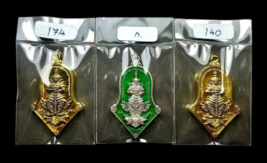 - เนื้อชนวนชุบกะหลั่ยเงินเงินลงยาสีเขียว 1 เหรียญ (กรรมการ)