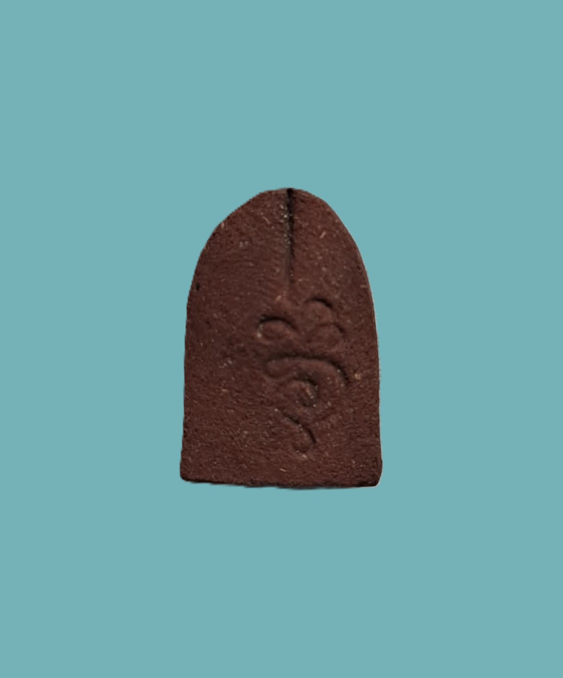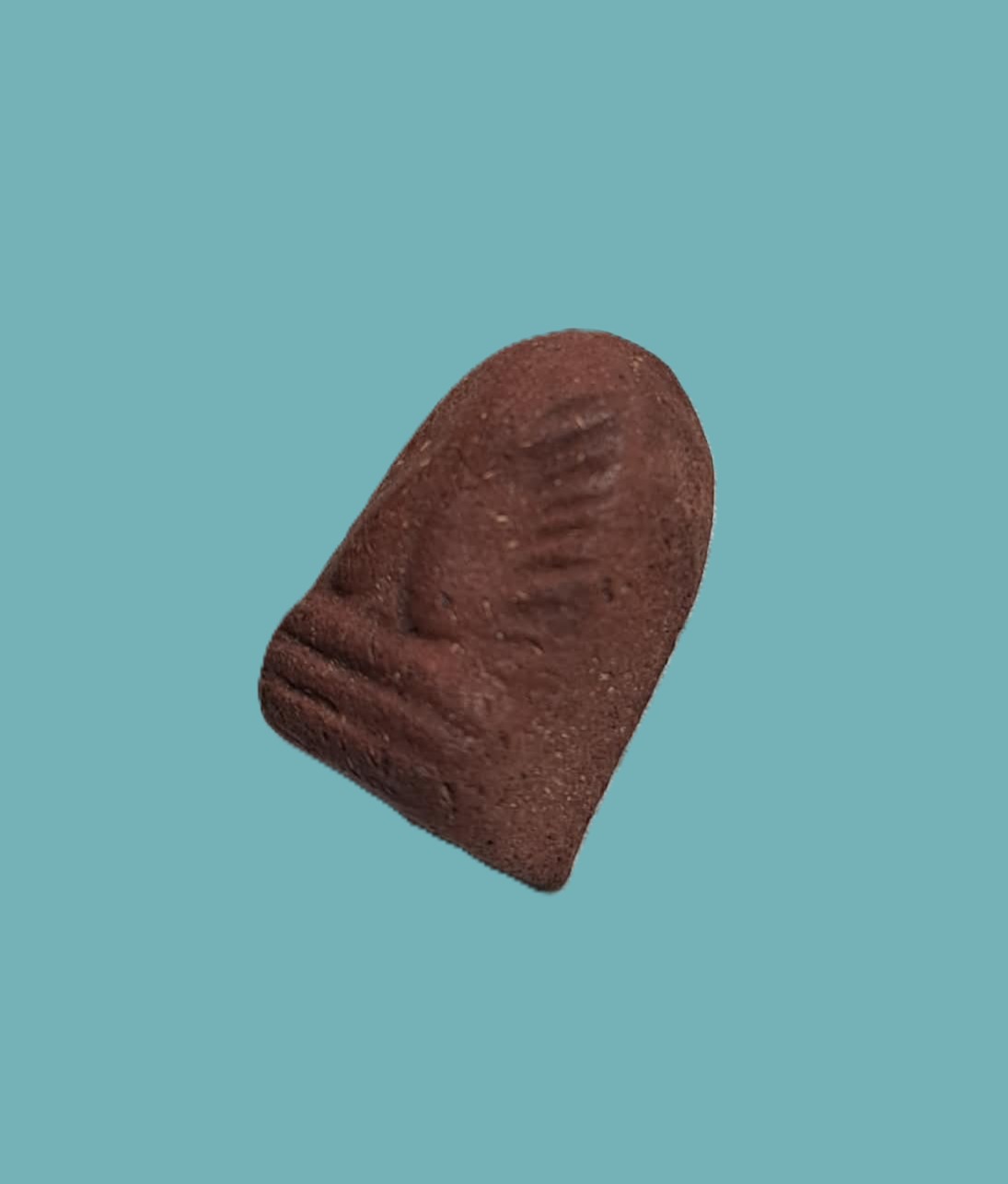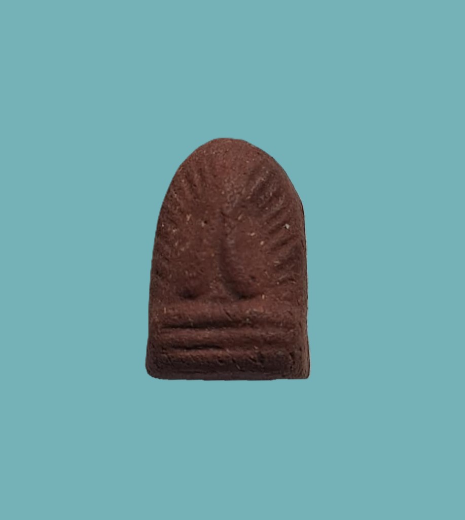 พระปิดตาพิมพ์รัศมี เนื้อดินแดง หลังยันต์ องคืหนามา ไม่รู้ที่ครับ |