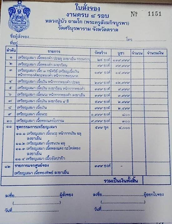 จัดสร้างเพื่อ เป็นที่ระลึกเจริญอายุวัฒนมงคลครบ 96 ปี หลวงปู่บัว ถามโก
