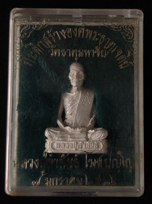 รูปเหมือน หลวงปู่คำพันธ์ วัดธาตุมหาชัย รุ่นอุดมมงคล เนื้อเงิน ปี 2536 สภาพสวย มาพร้อมกล่องเดิมครับ