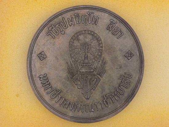 เหรียญบาตรน้ำมนต์ " อาจารย์ฝั้น อาจารโร วัดป่าอุดมสมพร " ปี 2519 เนื้อโลหะผสมตะกั่ว มหาวชิราลงกรณราชวิทยาลัยจัดสร้าง ปลุกเสกพิธีใหญ่ |