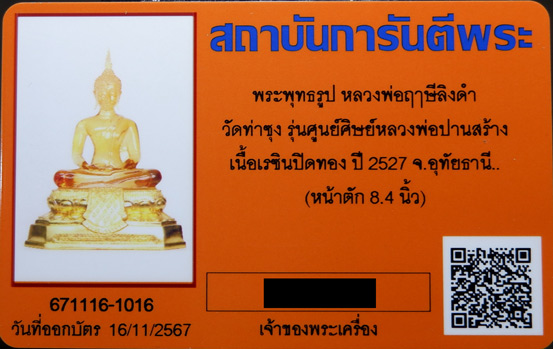 รายละเอียด พระแก้วสุโขทัย ปางสมาธิ หน้าตัก 9นิ้ว วัดท่าซุง จ.อุทัยธานี เนื้อเก่าสีน้ำผึ้ง..แท้! (ทันหลวงพ่อฤาษีลิงดำ วัดท่าซุง ปลุกเสก) พร้อมบัตรรับรอง G-Pra