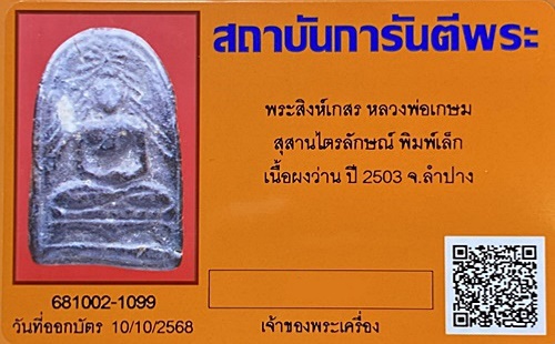 พระผงสิงห์เกสร หลวงพ่อเกษม พิมพ์เล็ก มีบัตรรับรองจีพระ เคาะเดียว
