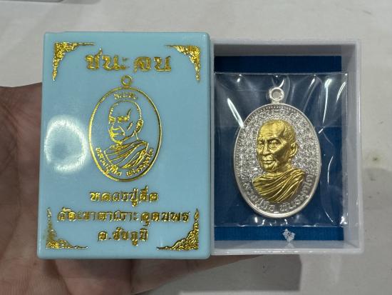 หลวงปู่จื่อ วัดเขาตาเงาะฯ เหรียญชนะจน ปี2567 เนื้อเงิน หน้ากากทองคำ no.72 มีกล่อง