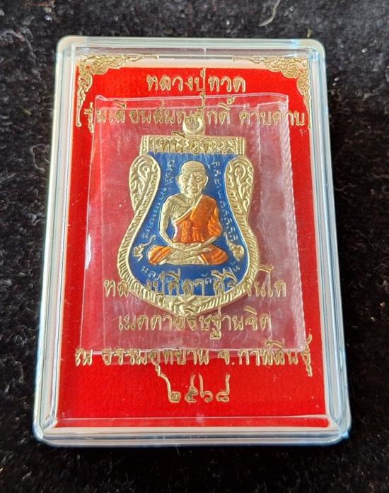 วัดใจ หลวงปู่ทวด หลวงปู่ศิลา เมตตาอธิษฐานจิต รุ่นเลื่อนสมณศักดิ์ เหนือดวง เนื้อทองทิพย์ ลงยา No.77