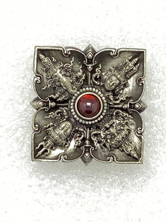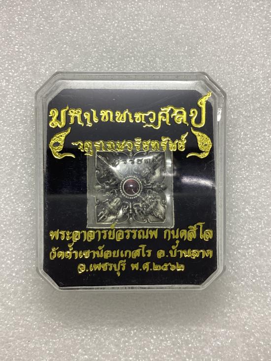 เคาะเดียวแดง 120 มหาเทพเทวศิลป์ จตุรเทพอริยทรัพย์ พระอาจารย์อรรณพ(อาจารย์เล็ก) วัดถ้ำเขาน้อย จ.เพชรบุรี เนื้อทองขาว พิมพ์ ขนาด 2 ซ.ม. กล่องเดิม |