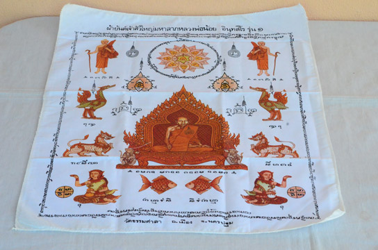 100ส่งด่วน *ผ้ายันต์ เจ้าสัวใหญ่ ปลาตะเพียน มหาลาภ หลวงพ่อน้อย อินุทสโร รุ่น ๑ วัดธรรมศาลา อ.เมือง จ.นครปฐม ผืนใหญ่ ครับ |