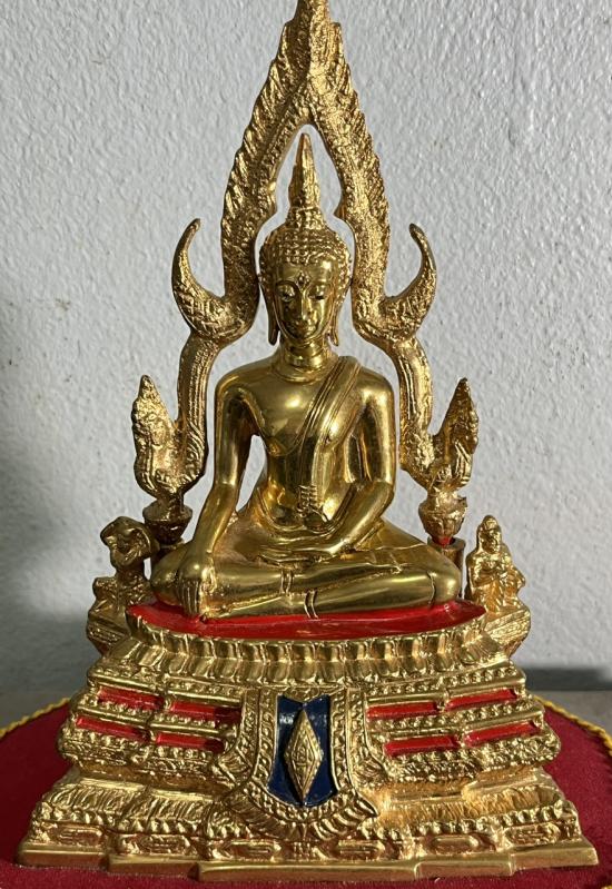พระบูชาพระพุทธชินราชเนื้อทองเหลืองผิวขัดมัน หน้าตัก 3.0 นิ้ว ตราอกเลาหลังพานพระศรี พร้อมตู้ |