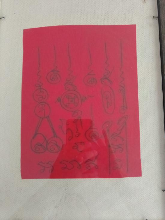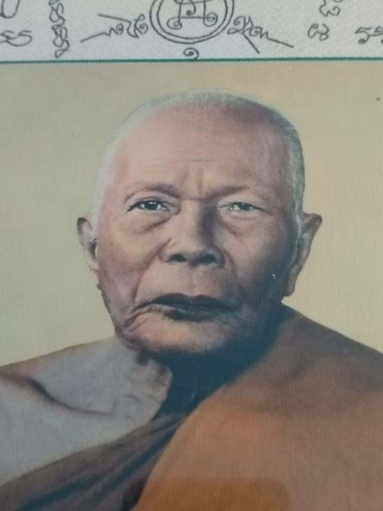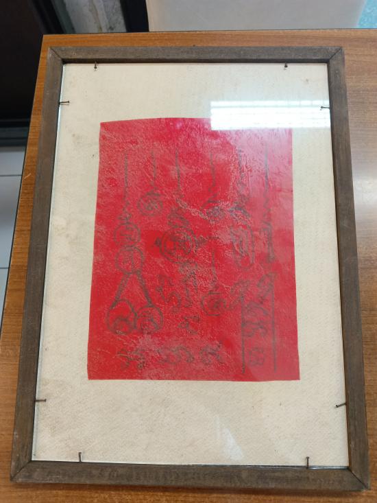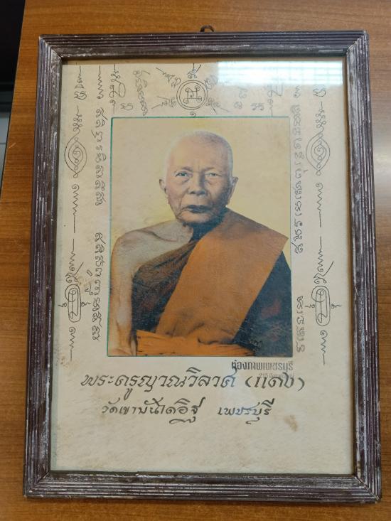 **รูปถ่ายบูชา หลวงพ่อแดงวัดเขาบันไดอิฐ เพชรบุรี หลังยันต์กันภัย กรอบไม้เก่าเดิม