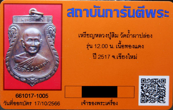 เหรียญหลวงปู่สิม พุทธาจาโร วัดถ้ำผาปล่อง รุ่น12.00น. ปี2517 จ.เชียงใหม่ พิมพ์ใหญ่ บัตรรับรอง G-PRA