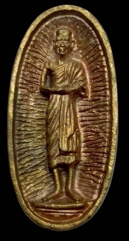 เคาะเดียวแดง เหรียญรูปเหมือนยืน รูปไข่ เนื้อนวะโลหะ รุ่นวันเพ็ญ เดือน12 พร้อมกล่อง ปี36 (จำนวน 8 กล่อง)