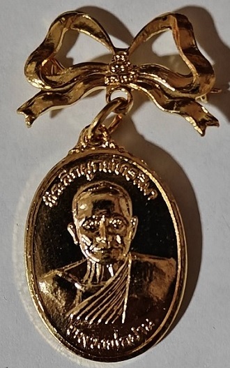 เหรียญที่ระลึกงานผูกพัทธสีมา ชุบกะไหล่ทอง หลวงพ่อปาน - หลวงพ ่อฤาษีลิงดำ วัดท่าซุง ปี2520 มีโบว์มีเข็มกลัด |